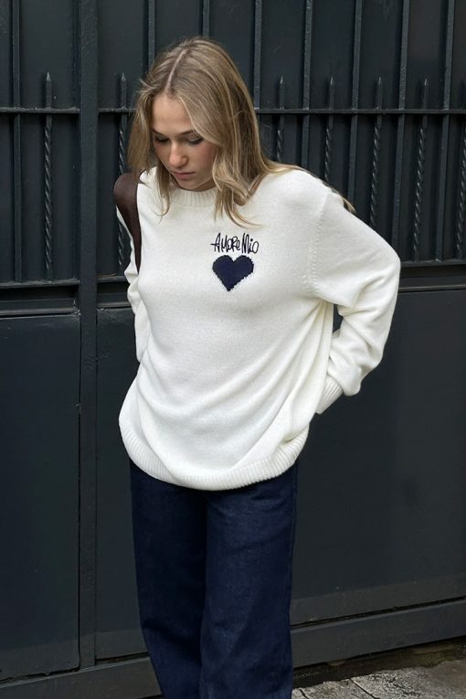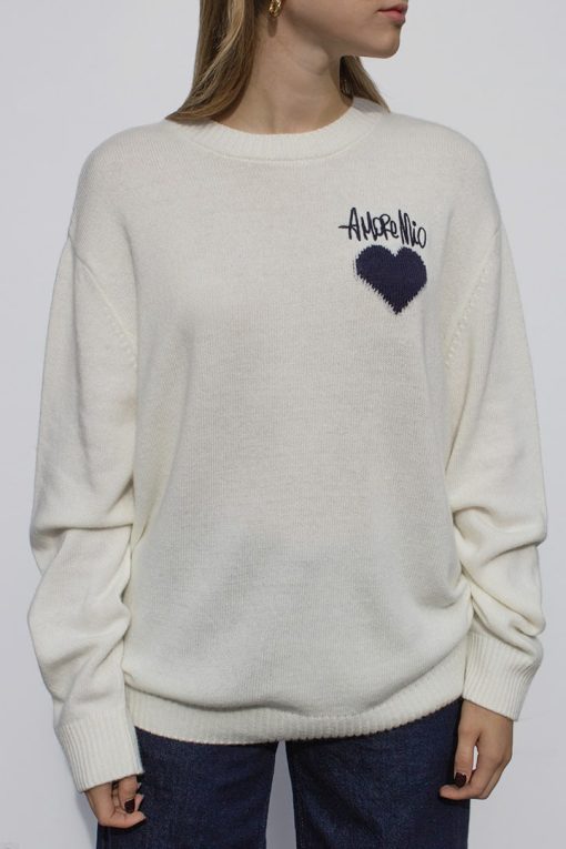 Sweater with Amore Mio print, crew neckline, long sleeves, regular length, relaxed fit.